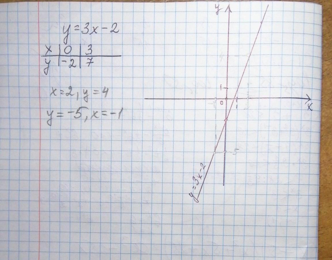№ 4 Побудуйте графік функції у=3x-2. Користуючись графіком, знайдіть: 1) значення функції, якщо значення аргументу дорівнює 2; 2) значення аргументу, при якому значення функції дорівнює - 5. ДОПОЖИТЬ БУДЬ ЛАСКА ДУЖЕ СРОЧНо..