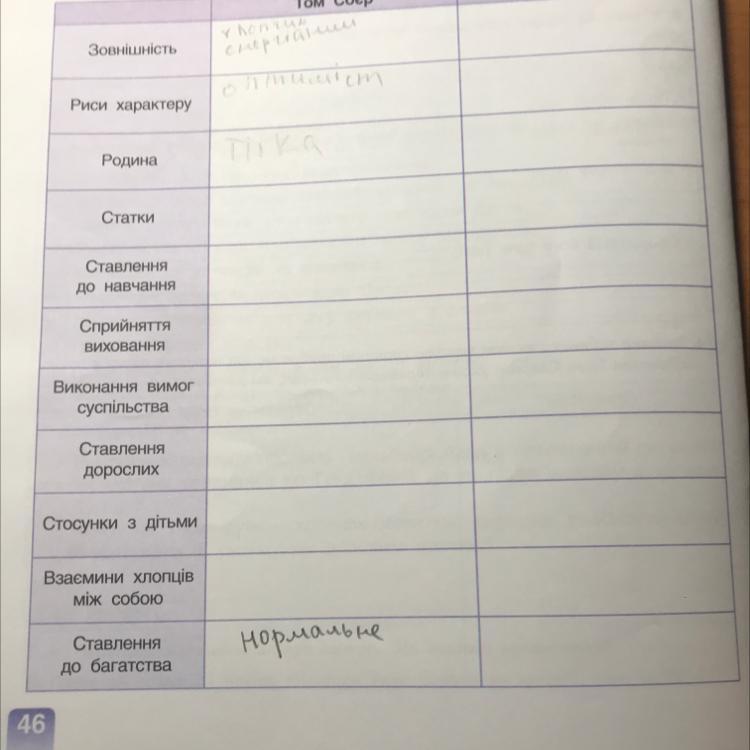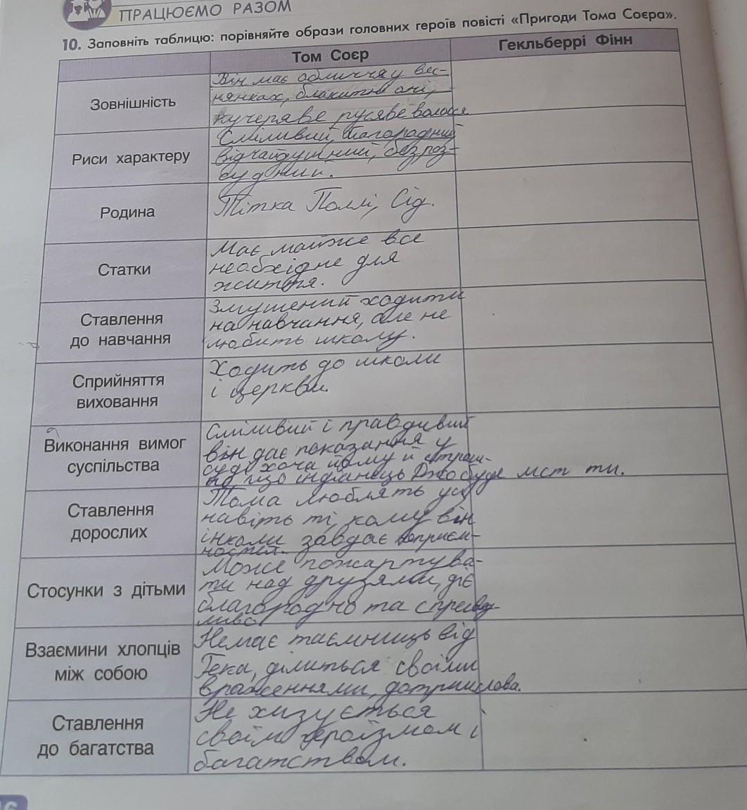 10. Заповніть таблицю: порівняйте образи головних геров пост Пригоди Тома Со
