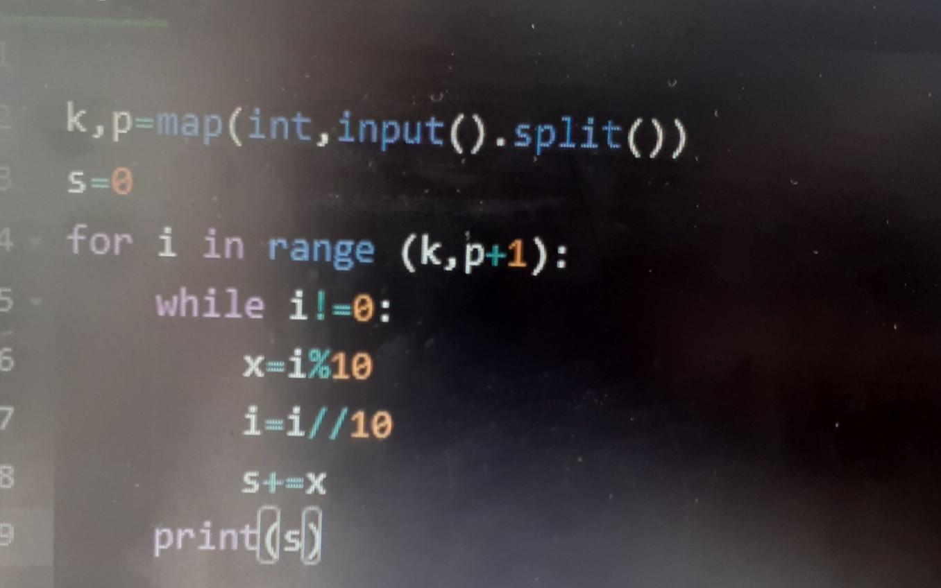 Задание №1. Напишите программу, которая находит сумму цифр чисел между k и р. Какую ошибку вы допу- стили при выполнении задания? Про- верьте работу операторов, расположен- ных в теле цикла, путем трассировки.