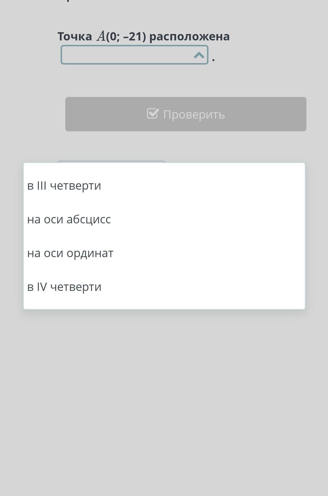 Точка А(0;-21) расположена в III четверти на оси абсцисс на оси ординат в IV четверти Проверить