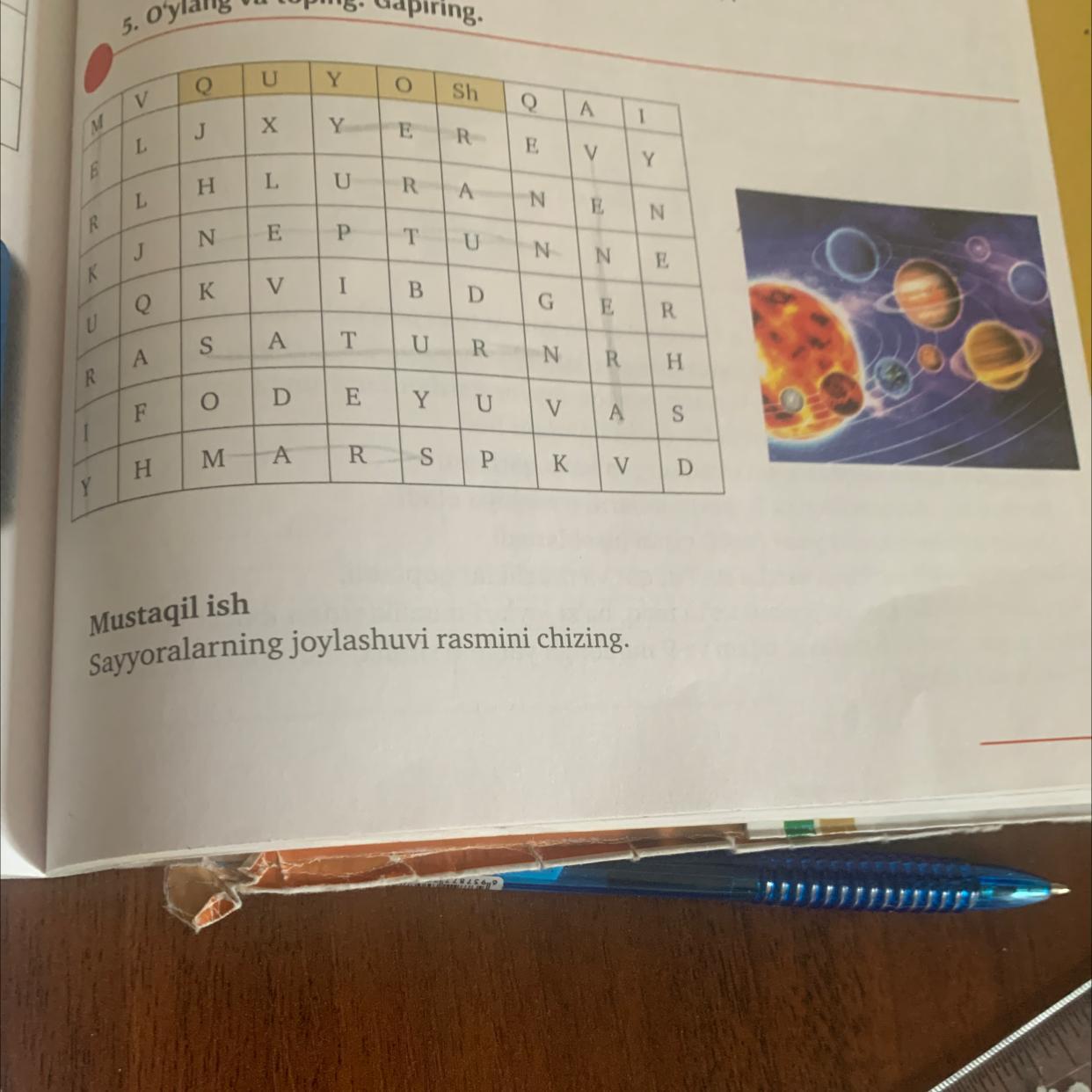 ответ: Merkuriy, Venera, Zemlya, Mars, Yupiter, Saturn, Uran, Neptun.