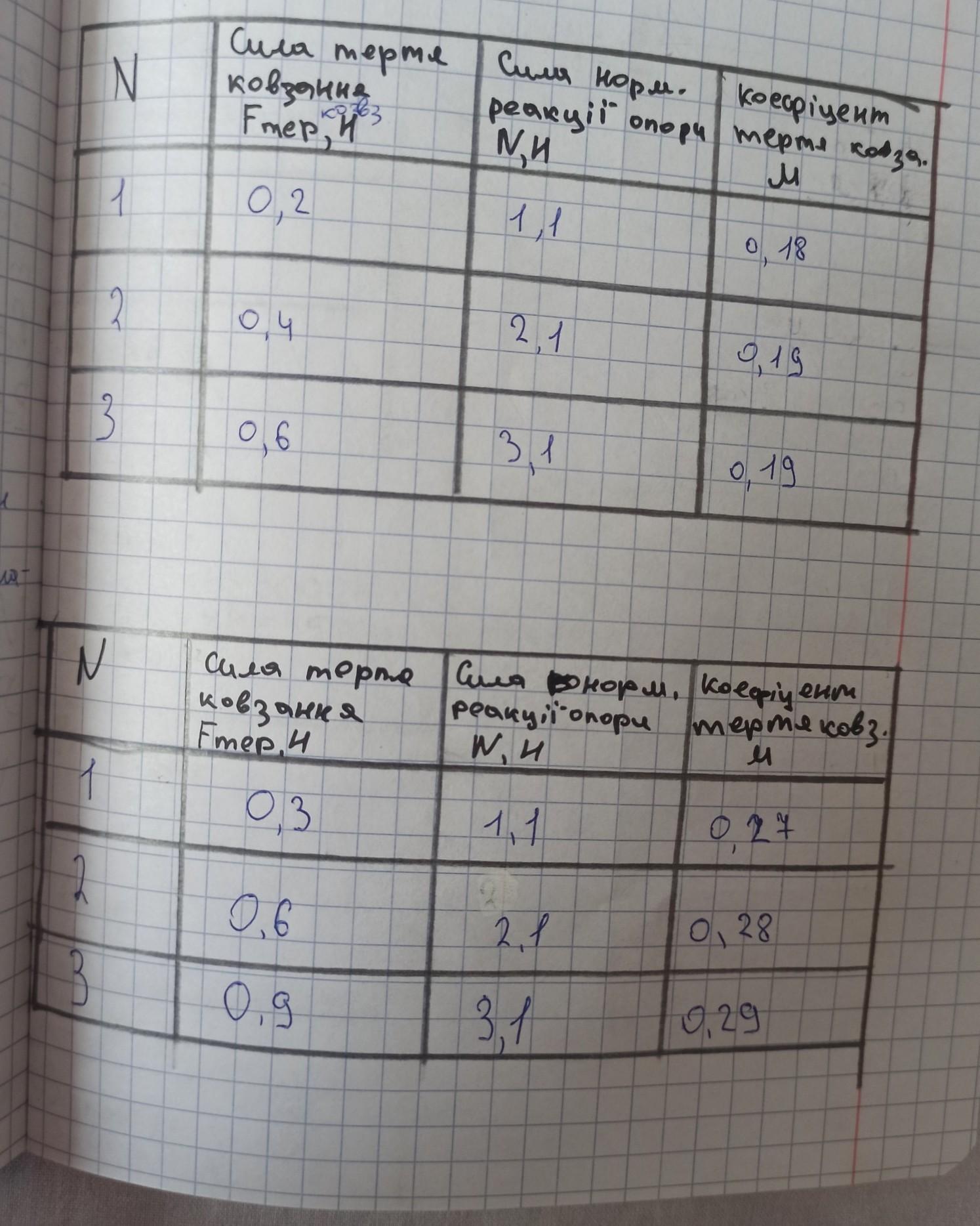 только у меня сила тертя ковзання и сила нормальнои опоры поменяны местами