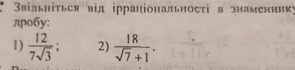 первую дробь умножаем на корень из 3 , а вторую на корень из 7 и - 1