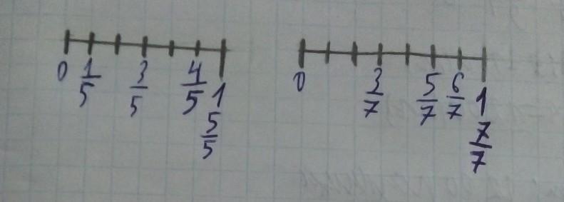 5 Начерти числовые лучи. Отметь на них дроби. Запиши неравенства. 4 5 a) 115 3 5' 6) 3 5 7 7 1 1 6