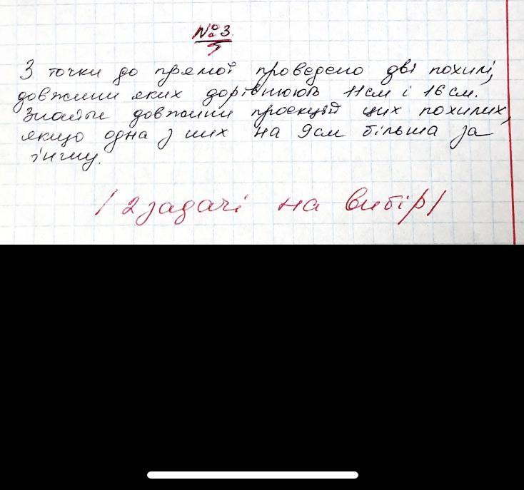 з точки до прямої проведено дві похилі довжини яких дорівнюють 11 см і 16 см знайти довжини проекцій цих похилих якщо одна з них на 9 см більша за іншу
