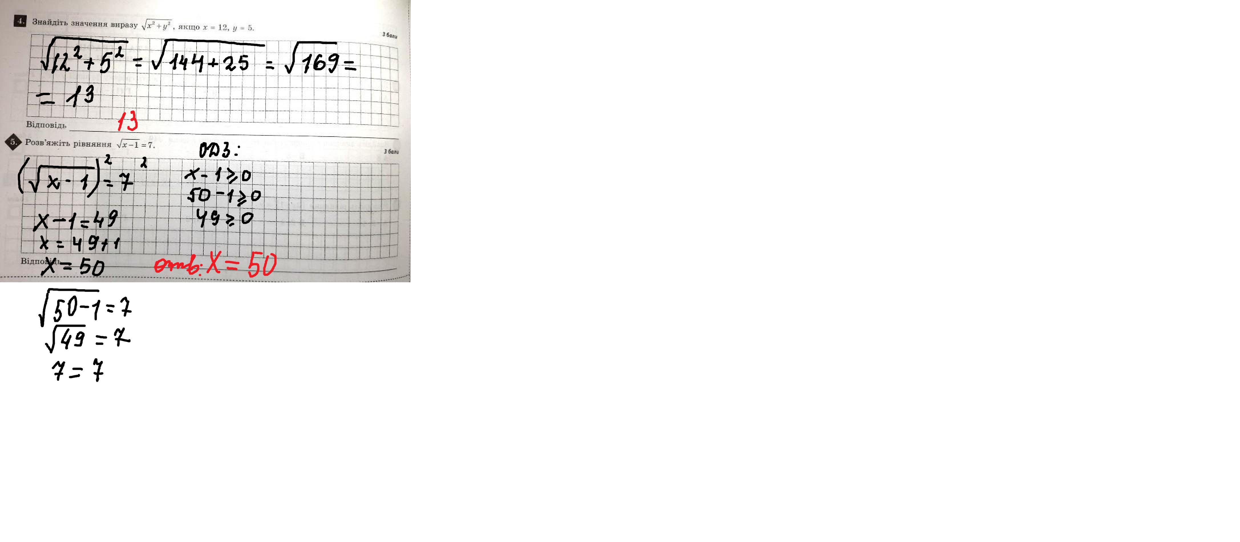 4. 13 5.х=50