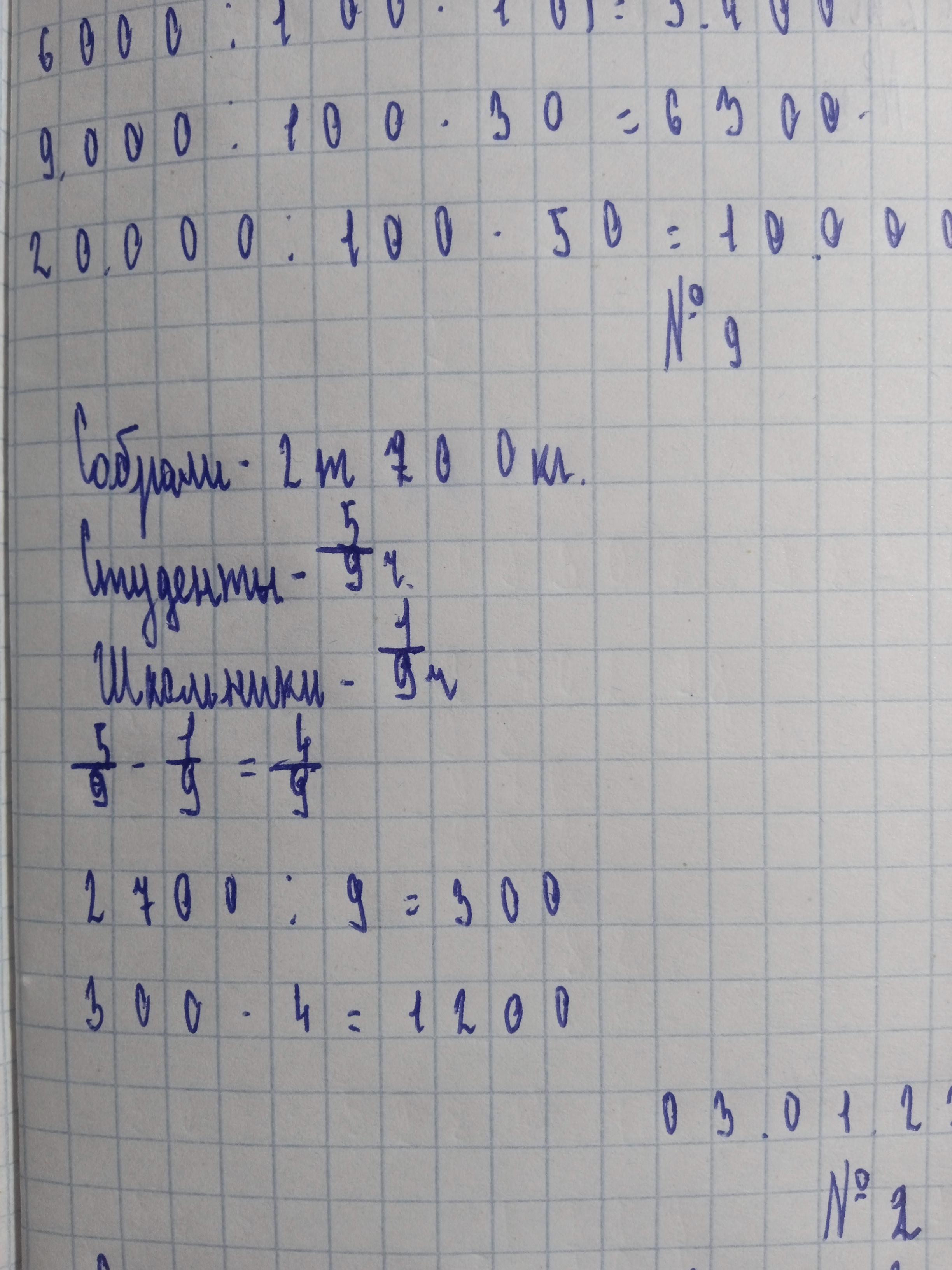 2) 2700÷9×4=1200(кг) - собрали больше студенты,