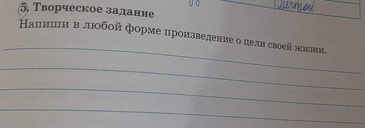 . Творческое задание Напиши в любой форме произведение о цели своей жизни.