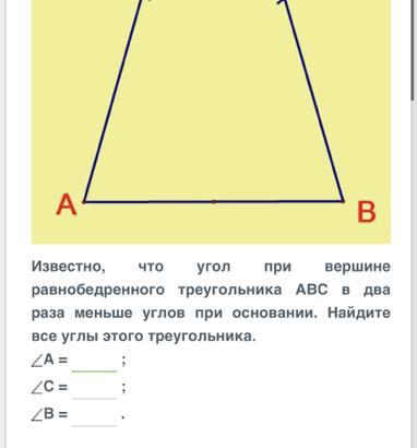 Объяснение:Сумма углов треугольника равна 180 градусам. Если треугольник равнобедренный, значит равны углы при основании. Обозначим меньший угол буквой х (угол при основании). Получится уравнение: 2х+2х+х=180.