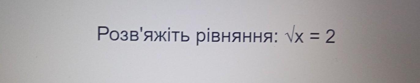 Отже, розв'язком рівняння є x = 4. Треба перевірити, чи задовольняє він початкове рівняння √x = 2: