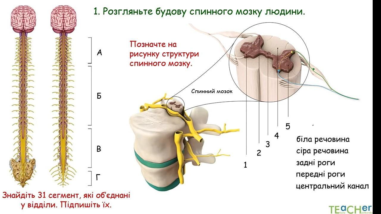 Відповідь:Спинни́й мо́зок (лат. medulla spinalis) — відділ центральної нервової системи, що розміщений у хребтовому каналі, та виконує рефлекторну й провідникову функції. Він починається на рівні нижнього краю отвору потиличної кістки та є безпосереднім продовженням довгастого мозку (нижньої частини головного мозку), а внизу (на рівні І-ІІ поперекових хребців) закінчується конусоподібним звуженням (conus medullaris), від якого вниз відходить кінцева нитка, сформована із сполучної тканини. Ця нитка спускається в крижовий канал і прикріплюється до його стінки. Спинний мозок у дорослої людини являє собою тяж довжиною 41-45 см, дещо сплющений спереду назад, діаметром — 1 см, масою близько 35 грамів.