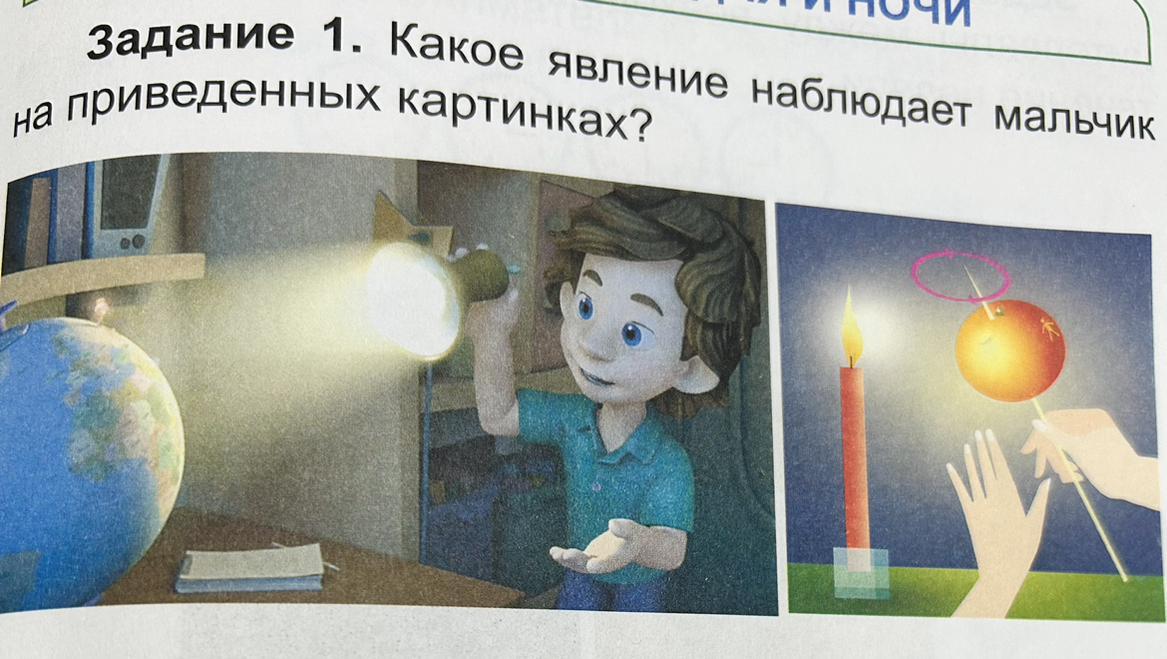 Мальчик наблюдает как сменяется День и Ночь, тут показано что лампа это сонце. Наша земля куржится вокруг солнца и именно поэтому у нас сменяется день и ночь