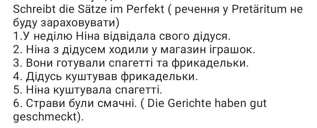 ТРЕБА ПЕРЕВЕСТИ РЕЧЕННЯ НА НІМЕЦЬКУ У МИНУЛОМУ ЧАСІ!!!!