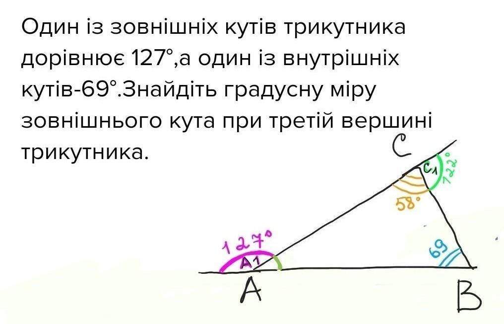 ∠Свнеш=∠А+∠АВС=69+53=122°.