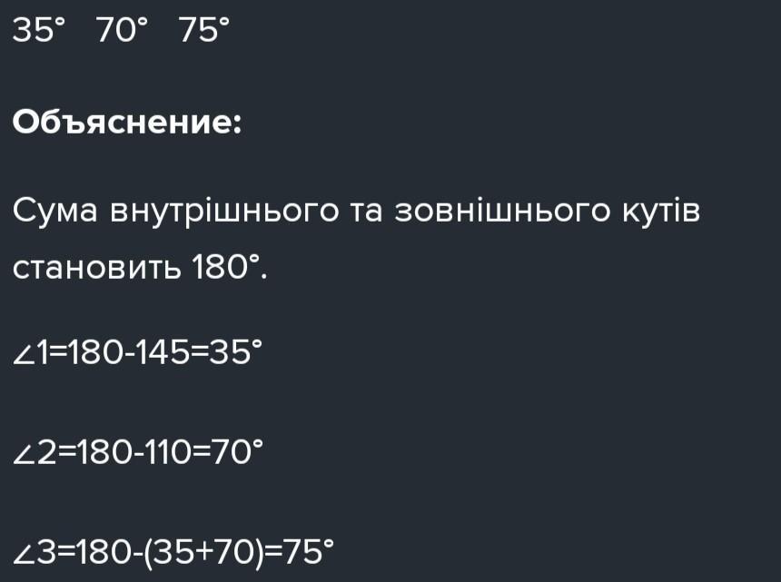 Внешний угол треугольника равен сумме двух оставшихся углов треугольника не смежных с этим внешним углом: