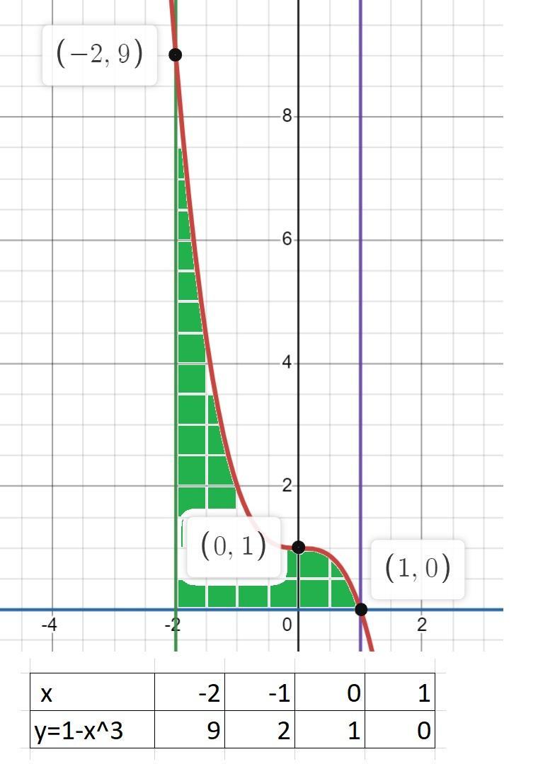 2.3. 2) y = 1- x³, y = 0, x = -2, x = 1.