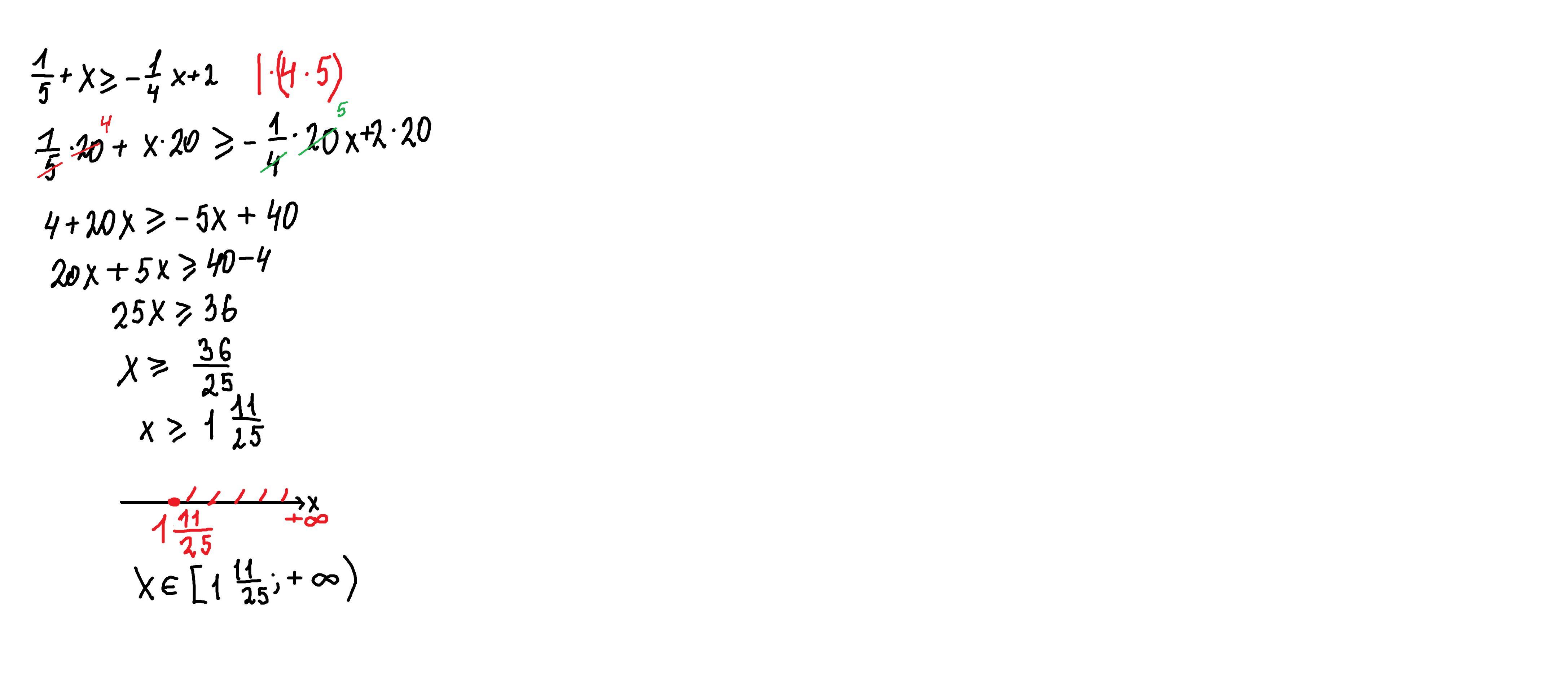сначала избавимся от знаменателей,умножим все неравенство на (4*5=20)