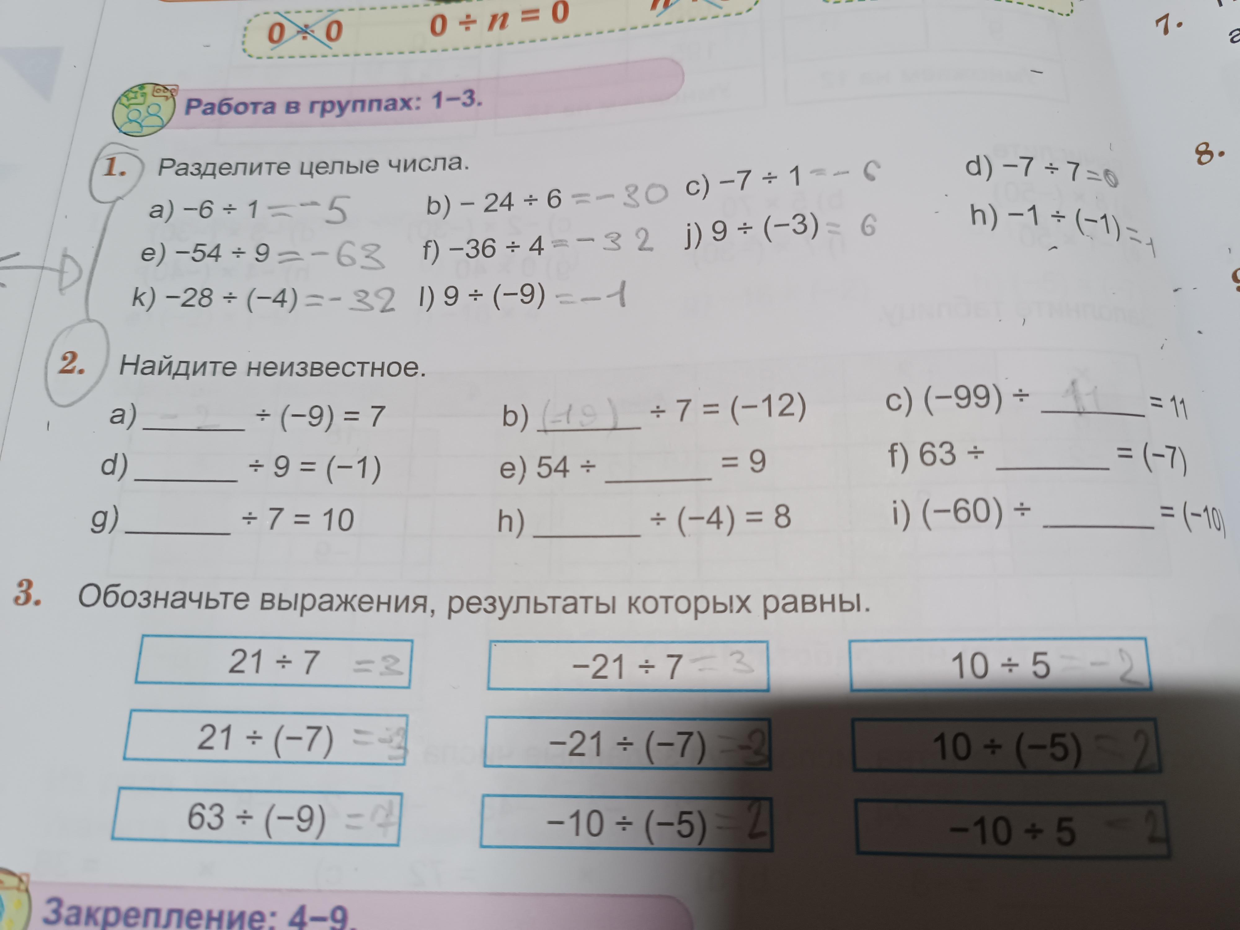 f)x=63:(-7)=-9 g)x=10*7=70 h)x=8*(-4)=-32 i)x=60:10=6