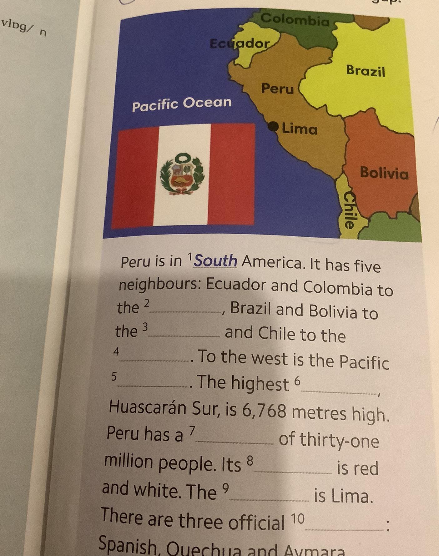 Look at the map.Complete the text about Peru with one world in each gap. Задание фото даю