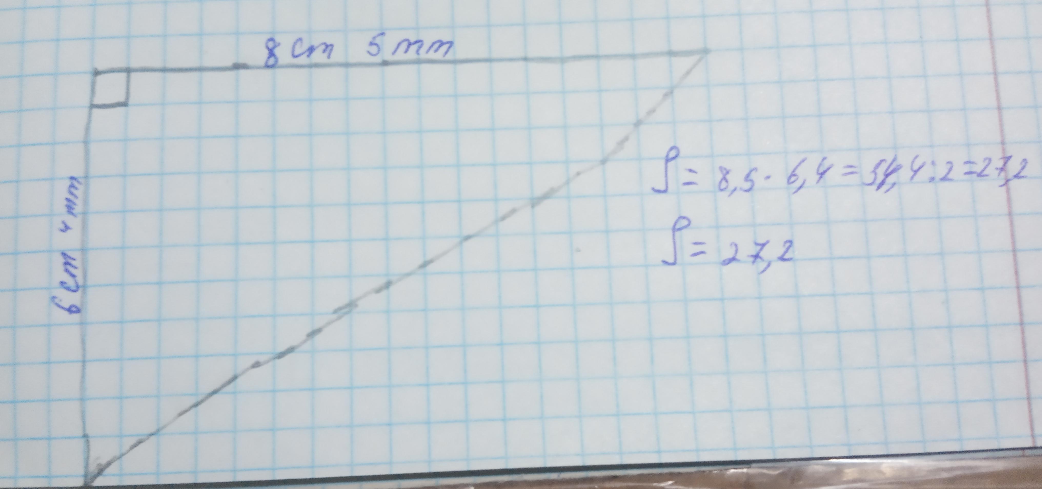 8. Отметьте точку А в тетради в клеточку. От точки А направо проведите отрезок АВ длиной 8 см 5 mm. В точке А этого отрезка постройте ВAC, равный 90º Отложите отрезок АС длиной 6 cm 4 mm. Вычислите площадь треугольника АВС.Даю 60 баллов пжпж быстрее