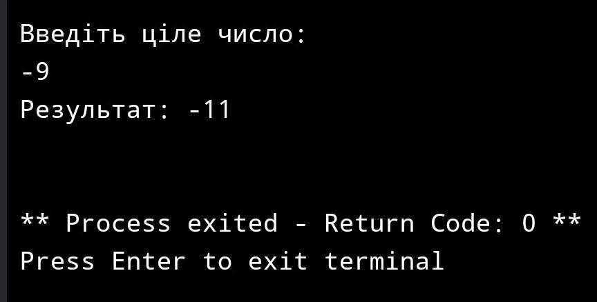 Дано ціле число . Якщо воно є позитивним, то додати 1; якщо негативне , то відняти 2; якщо нульовим, то змінити його на 10 . Вивести отримане число
