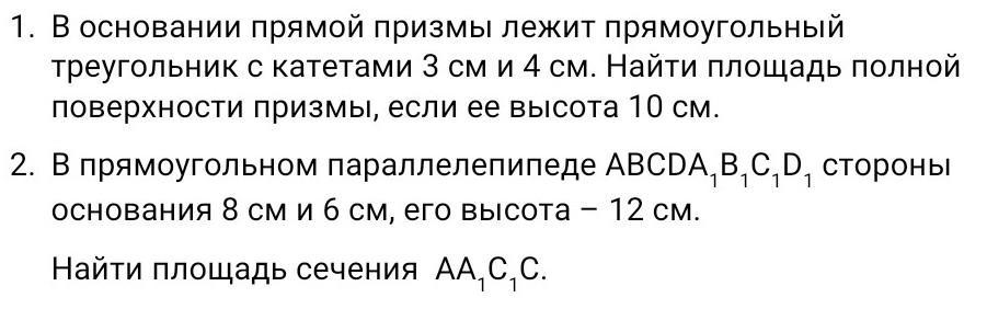 S(AA1C1C)=AA1*AC=12*10=120см²