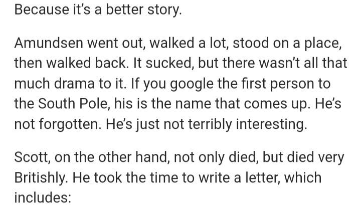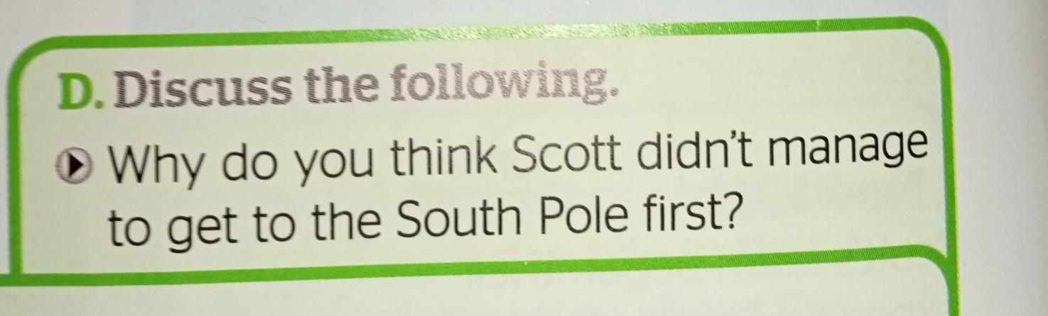 D. Discuss the following. Why do you think Scott didn't manage to get to the South Pole first?