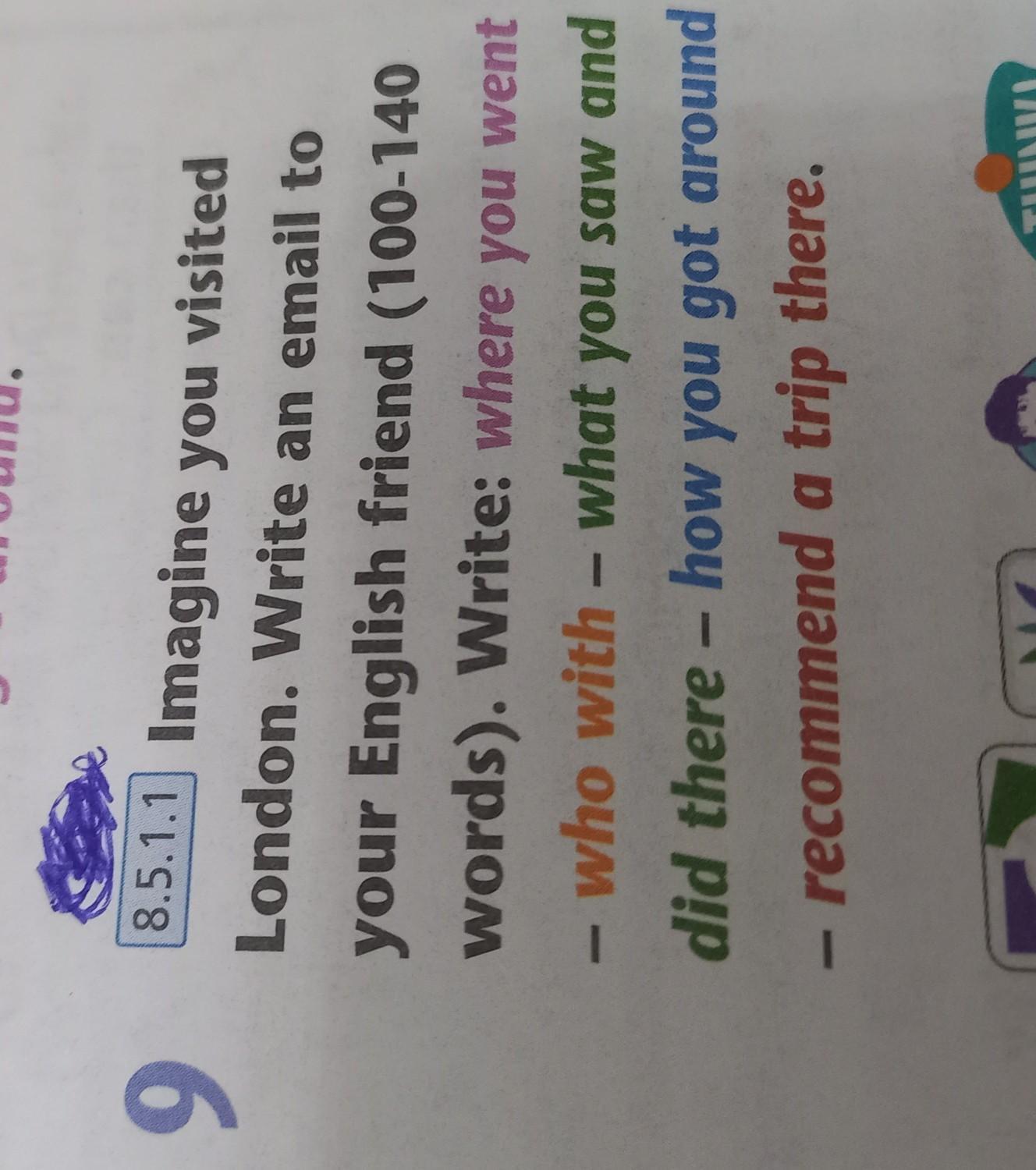 9 8.5.1.1 Imagine you visited London. Write an email to your English friend (100-140 words). Write: where you went - who with - what you saw and did there - how you got around recommend a trip there. -