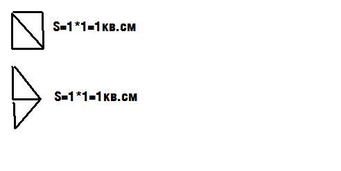 начерти прчмоугольный треугольник две стороны которого имеют длину по 1 см.Из двух таких треугольников составь квадрат.Какую площадь он имеет?Из двух таких треугольников составь еще один треугольник.Чему равна площадь этого составленного треугольника?