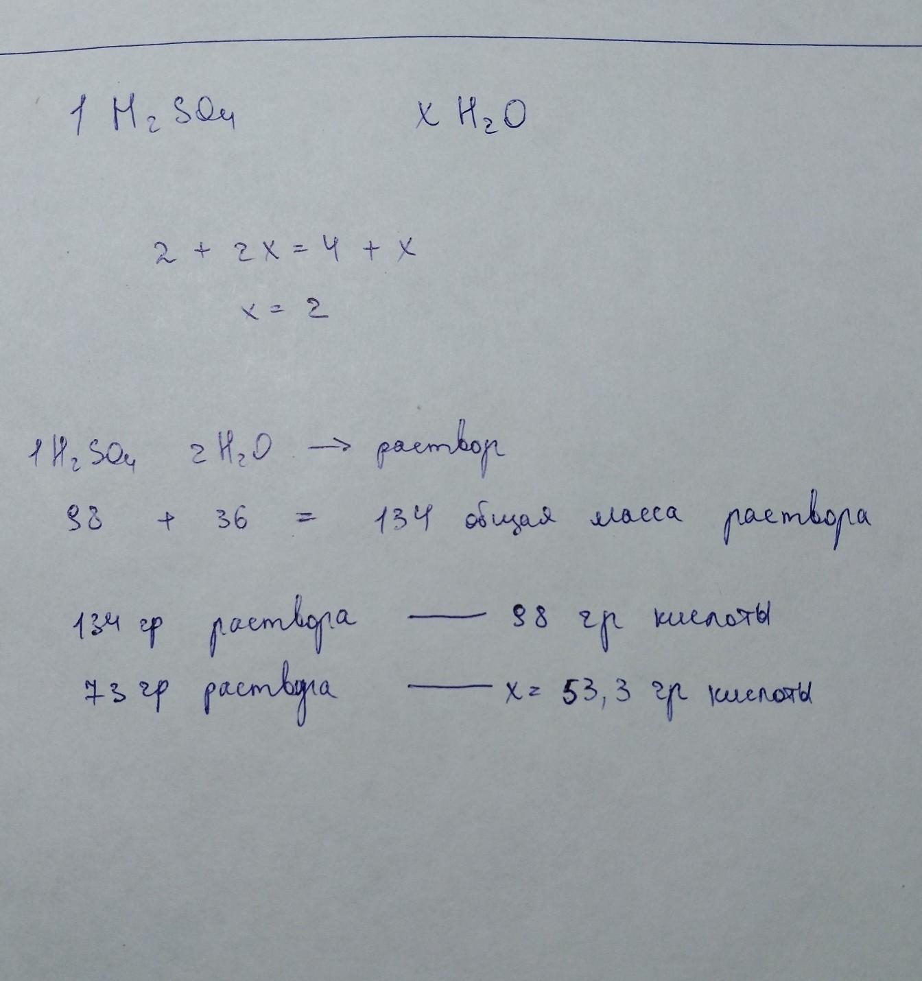 В водном растворе серной кислоты число атомов кислорода равно числу атомов водорода. Рассчитайте массу кислоты в таком растворе массой 73г