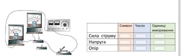 Сила струму: Символ – I; число – 0,2; Одиниці вимірювання – ампери(А).