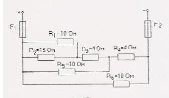 R2345 = R23 || R45 = (R2 + R3) || (R4 + R5) = 1 / (1 / (R2 + R3) + 1 / (R4 + R5)) = 28,75 Ом