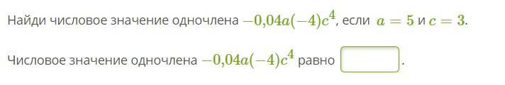 Найди числовое значение одночлена -0,04а(-4)c4, если а = 5 и с = 3