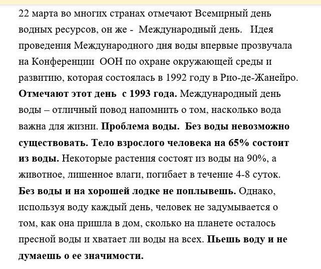 в нашем городе отмечают этот день с 1993 года ,но сейчас у нас проблема воды,а без воды невозможно существовать,так как мы состоим из воды я ,