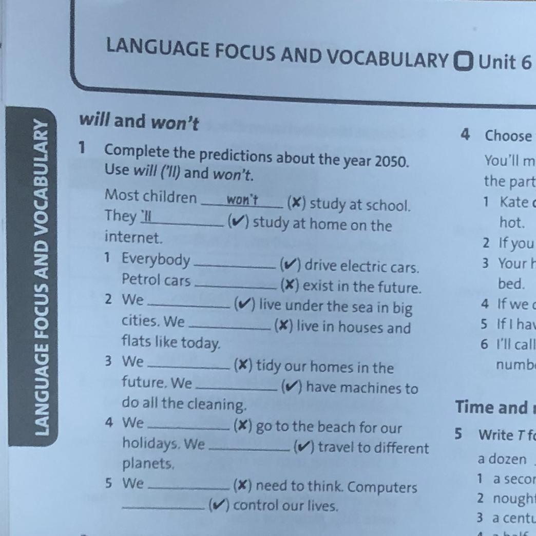 Там, где ×, отрицательное предложение, ставится Won't , а где ✓, тогда положительное, т.е Will