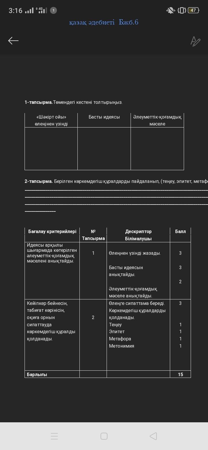 1-тапсырма. Төмендегі кестені толтырыңыз.