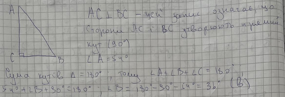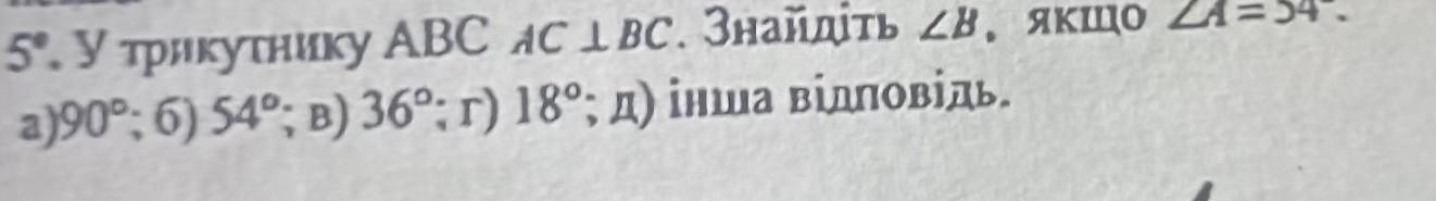 5. У трикутнику АВС АС 1 ВС. Знайдіть ‹В якщо ‹A = 54°.