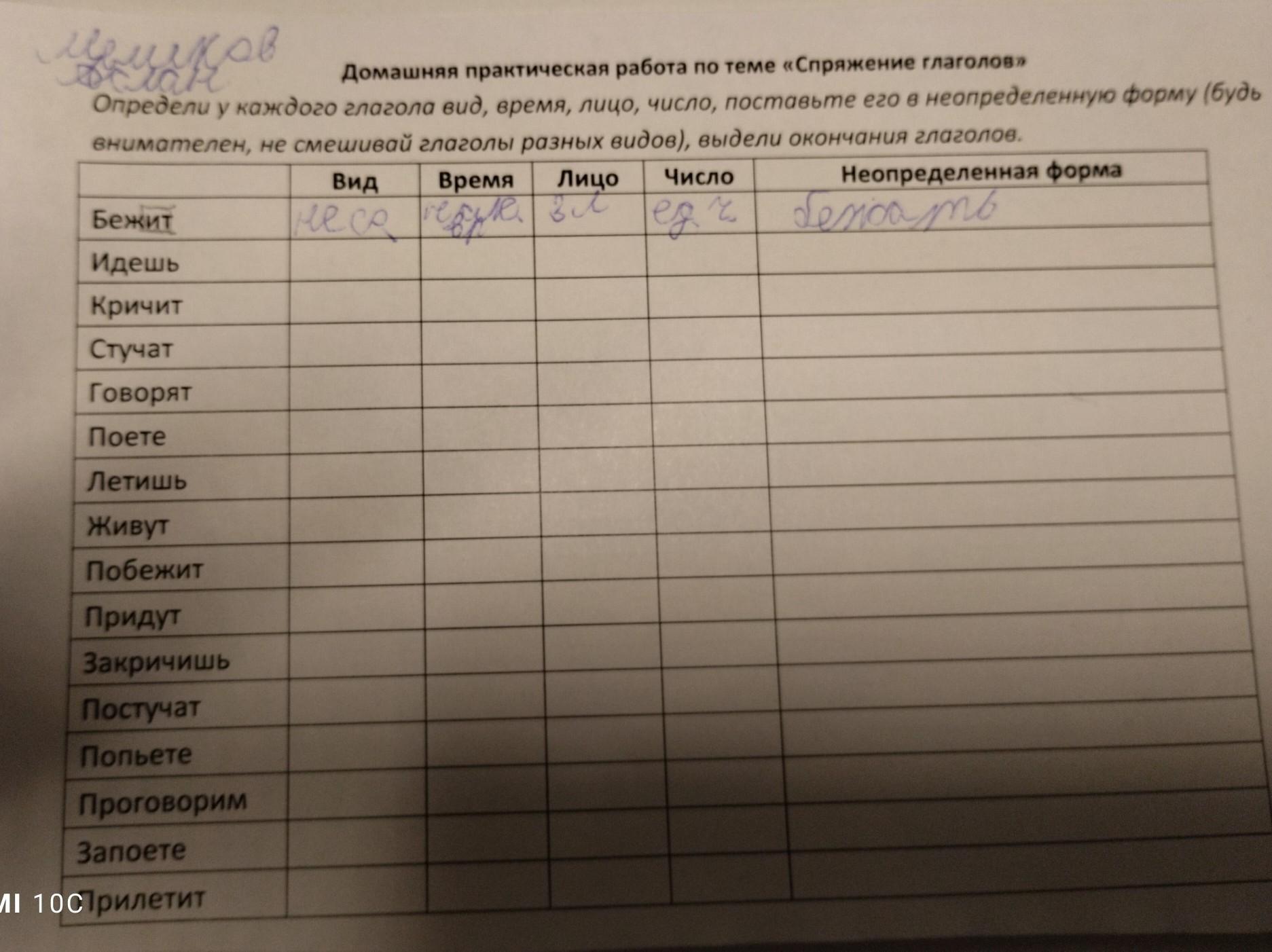определи у каждого глагола вид , время , лицо , число, поставь его в неопределенную форму