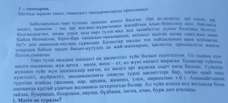 1) Қазақ халқы әлі күнге дейін төрт түлікті бағып, қағу арқылы күн көріп, оны табыс көзіне айналдырып жүр.