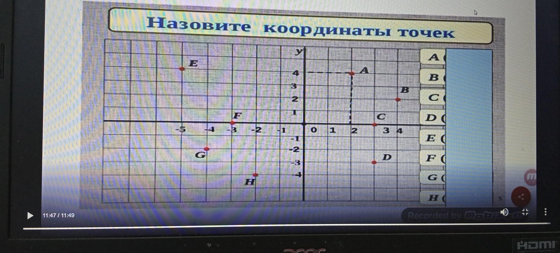 Ответ: А(2;4), В(4;2), С(3;0), D(3;-3), E(-5;4),H(-2;-4), G(-4;-2)