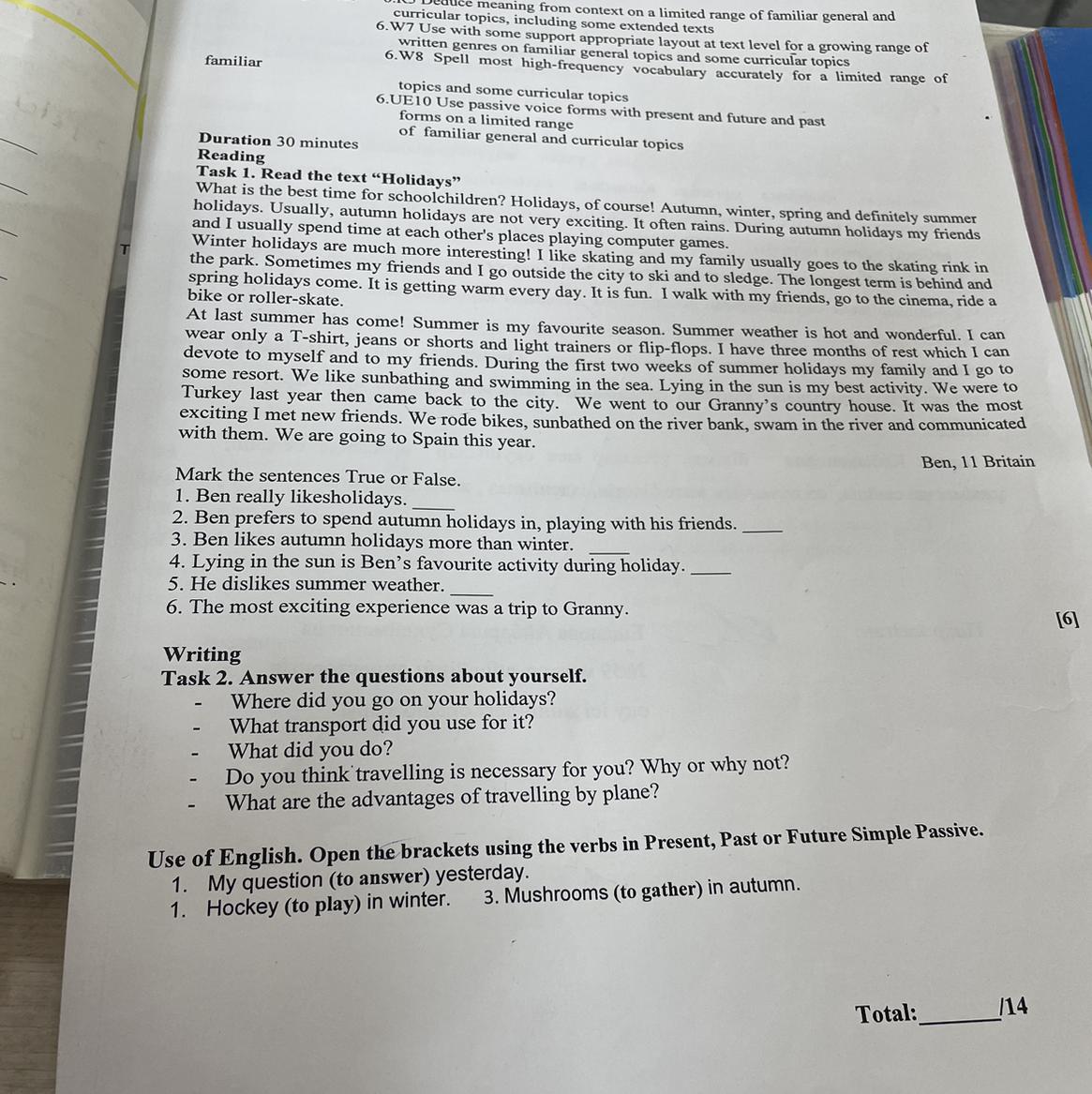 2. Ben prefers to spend autumn holidays in, playing with his friends.