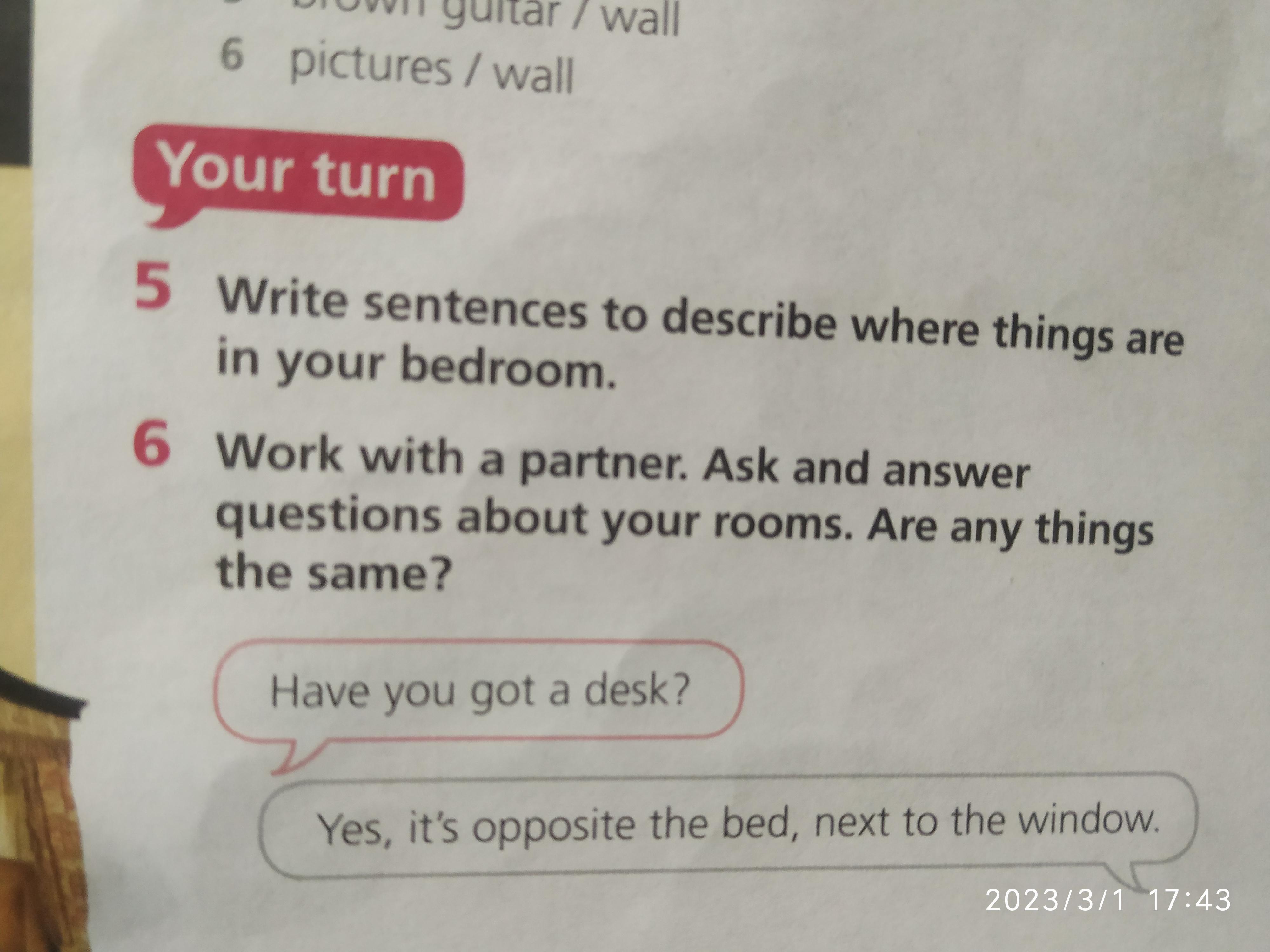 Ну там просто написать где что находится используя слова: near - рядом on - на under - под next to - рядом