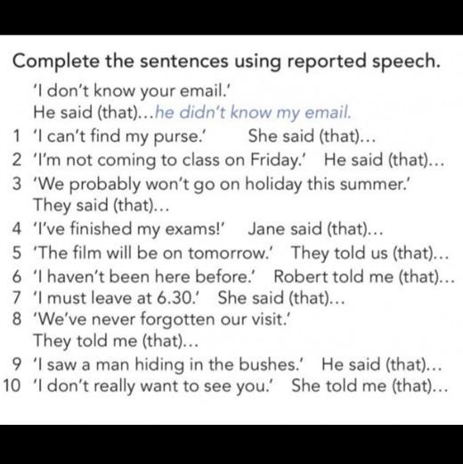 9 'I saw a man hiding in the bushes.' He said (that)...