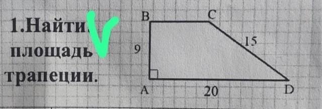 площадь будет высота * среднюю линию = 9*14 = 126 см