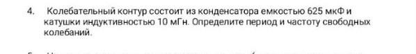T=2*π*√(L*C)=2*3.14*√(0.01*625*10⁻⁶)=157*10⁻⁴ c