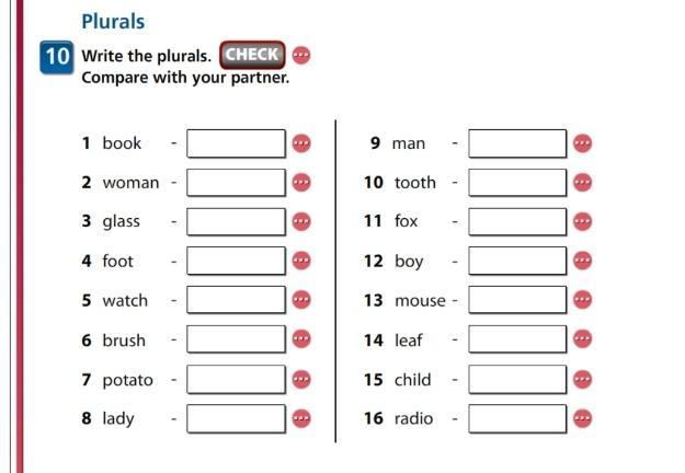 books women glasses feet watches brushes potatoes ladies men teeth foxes boys mice leaves children radios