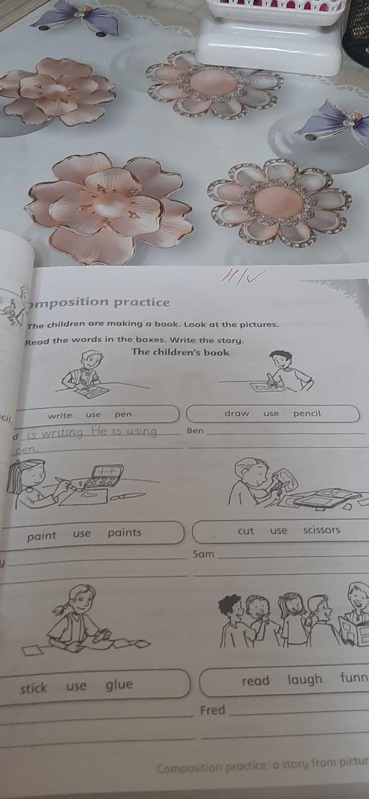 Ответ:2. Ben is drawing. He is using pencil.