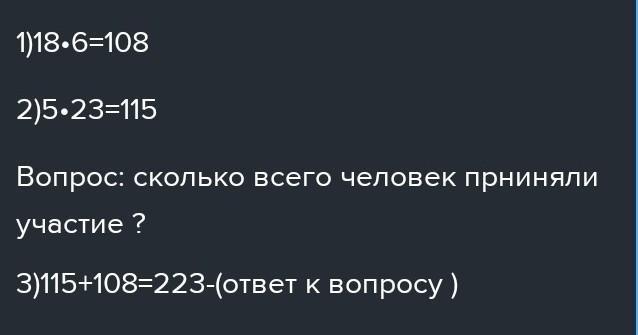 3. Дополни задачу вопросом и реши её. Попробуй придумать несколько вариантов вопросов. В музыкальном конкурсе приняли участие 6 коллективов по 18 чело- век в каждом и 5 коллективов по 23 человека в каждом. с краткой записью