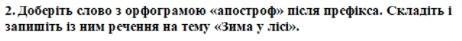 Доберіть слово з орфограмою «апостроф» після префікса. Складіть і запишіть із ним речення на тему «Зима у лісі».