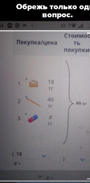 Покупка/цена 1 2 3 (18 x = 18 ТГ 40 ТГ 8 Tr x= Стоимос ТЬ покупки 88 тг срочно нужно сделать даю 45 баллов